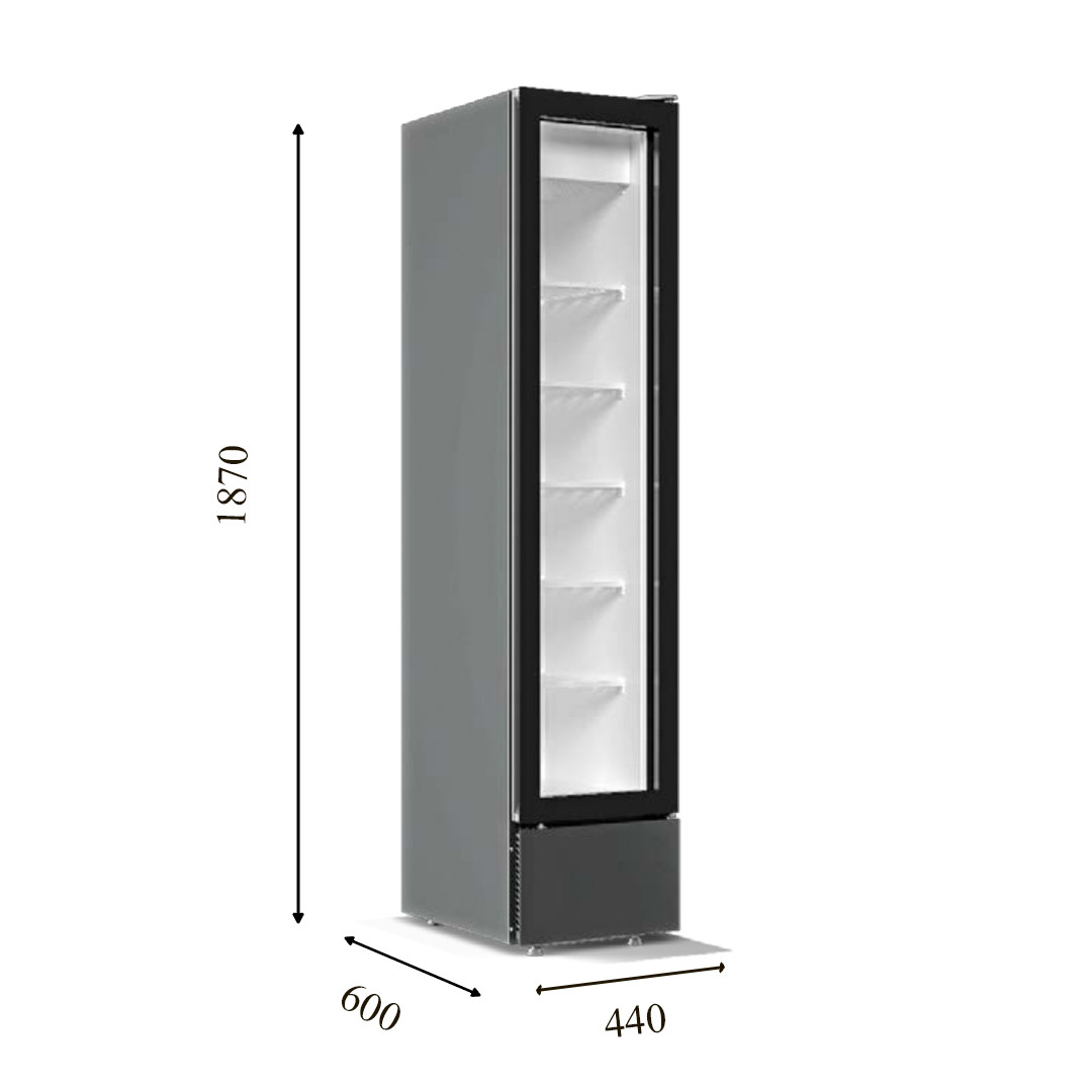 Призначена для демонстрації і зберігання заморожених продуктів в торгових точках. Має 5 охолоджуваних полиць. Двері має потрійний склопакет з відтаюванням, що не дає пітніти склу після відкриття. Морозильна шафа має внутрішне підсвічування.